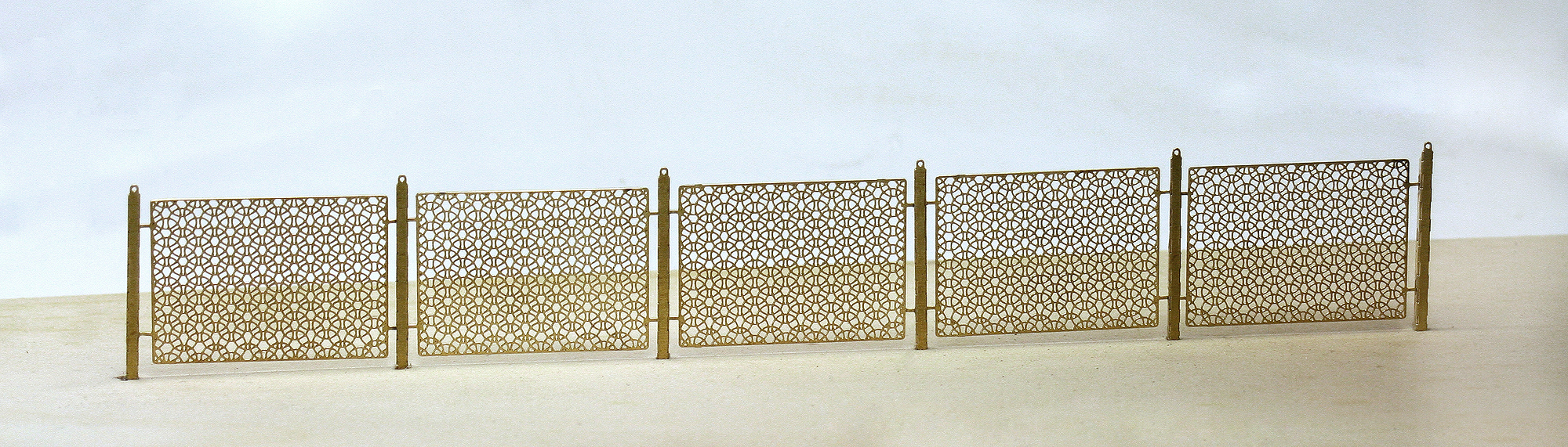 Bahn- und Industriezaun HO 1:87 Bausatz in Messing-Ätzbauweise. Filigraner und hochdetaillierter Messingätzbausatz. Alle Elemente untereinander in Länge, Anzahl und Anordnung beliebig kombinierbar.