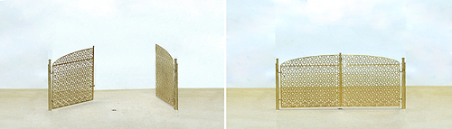 Modellfoto: Bahn- und Industriezaun, Doppelflügeltor, 2 Pfosten, ca. 78 mm lang u. 24 bzw. 29 mm hoch (Original 7m x 2,10 bzw. 2,50), Art. 8077